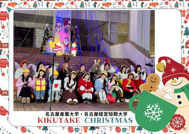 名古屋産業大学・名古屋経営短期大学では、学生手作りの「ペットボトルランタン」とイルミネーションがキャンパスを彩る中、恒例行事のイルミネーション点灯式「2025 KIKUTAKEルミナ」が令和7年12月16日に尾張旭キャンパスで盛大に行われました。